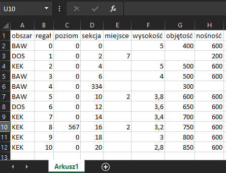 Futuriti WMS umożliwia importowanie lokalizacji z pliku excel do WMS. Funkcja ta może edytować już istniejące lokalizacje. Poniżej znajduje się przykładowy plik