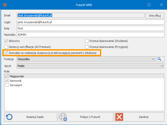 Obecnie synchronizacja parametrów jest obsługiwana w integracji z Subiekt GT. Użytkownicy mogą wciąż przeglądać wagę towaru w systemie WMS.