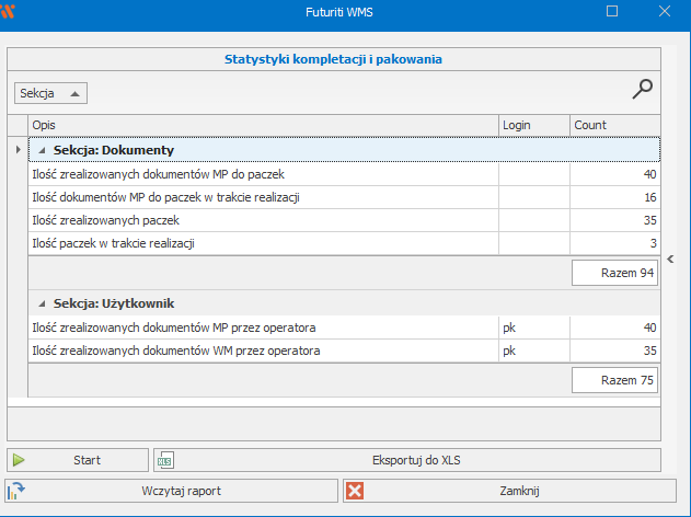- Raporty WMS: „Ilość zrealizowanych dokumentów”